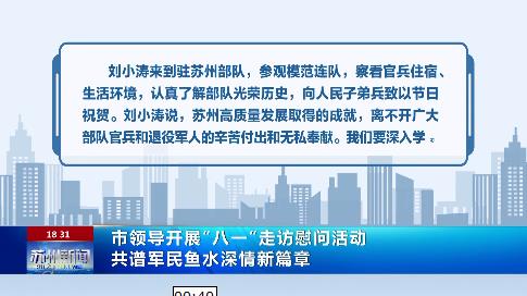 《蘇州新聞》欄目以“權(quán)威、民生、親切”為理念,在關(guān)注好時政、經(jīng)濟大事的同時,始終關(guān)注百姓冷暖,在市委、市政府與市民群眾之間架起了溝通的橋梁。該欄目曾獲評為全省廣電系統(tǒng)十大名優(yōu)專欄等稱號。主持人:賈薩 馬紹元 首播:新聞綜合頻道每天18:30 重播:新聞綜合頻道每天6:30 (版權(quán)所有:蘇州廣播電視總臺 未經(jīng)允許不得轉(zhuǎn)載)